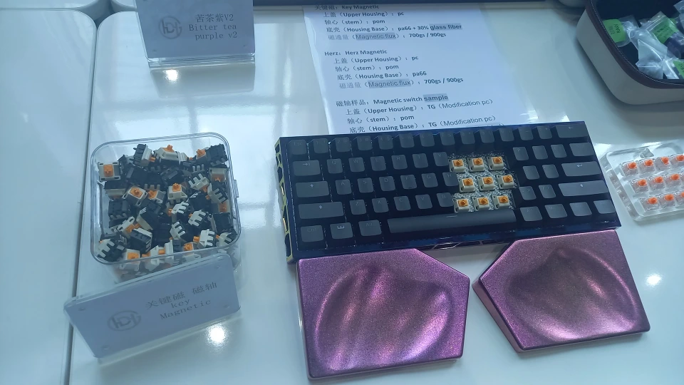 Grain Gold製HE SwitchのうちOwlab TiとDuhuk Herzは持ってるんだけどKey Magneticは持ってなかったので初めて触った. ほーんという感じ(幼稚園児並の感想). Take FreeなSample PackがあったのでHeavy TactileのBitter Tea Purple V2を貰っていった. Key Magneticの方が良かった気がする. 他にも何個かスイッチ展示してあったけど正直なところあんまり覚えてない.